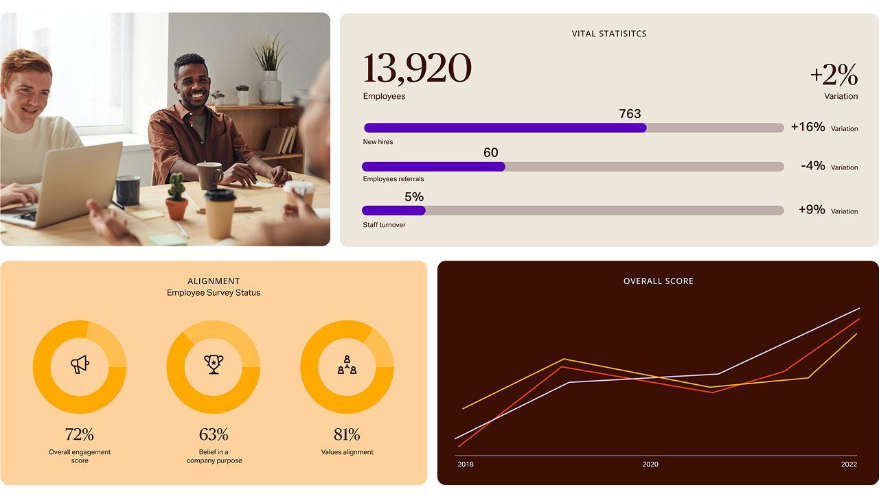 Working closely with you, we’ll help you determine the gap between your vision and current reality, define the opportunities for change and importantly, build an environment where engaged employees shape exciting initiatives they can embrace and run with. We’ll deliver actionable insight and an inspiring plan, supported by a dynamic, visual dashboard. This means you can capture how you’re performing now, and track cultural change over time, keeping you laser focussed.