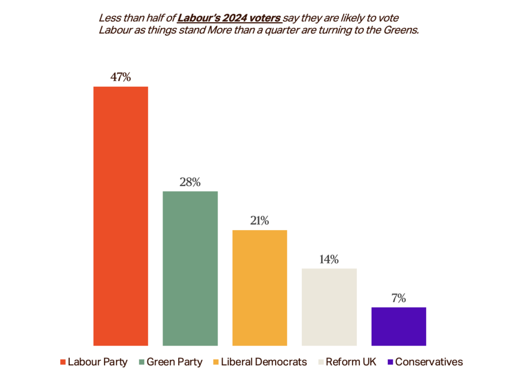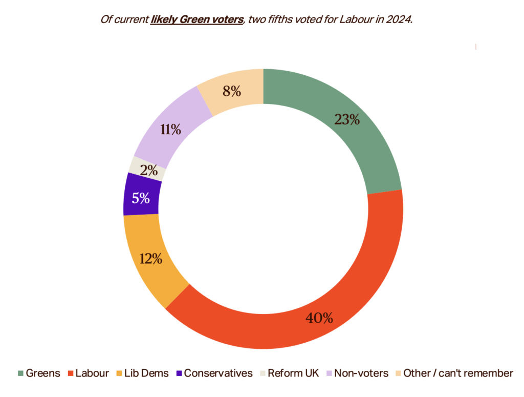 The Greens are winning on two fronts: retaining their 2024 voters with remarkable loyalty, while simultaneously capturing a huge swathe of disillusioned Labour voters.